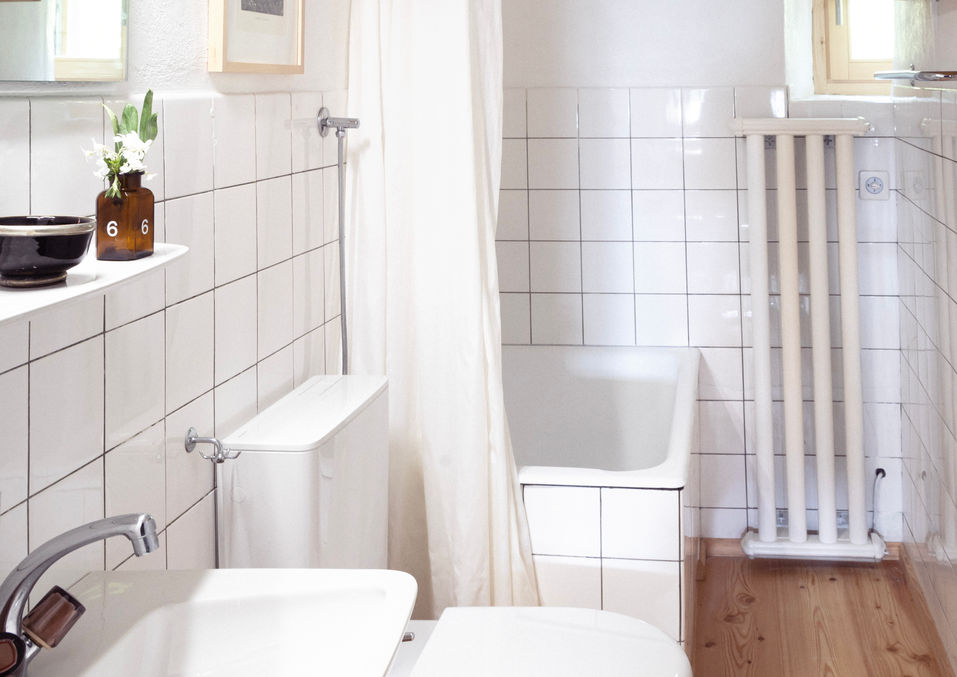 Die Sitzwanne im kleinen Badezimmer wärmt nach langen Ski- und Schlitteltouren die durchfrorenen Knochen wieder auf. Der Badezimmer-Komfort ist einfach aber zweckdienlich und originell.